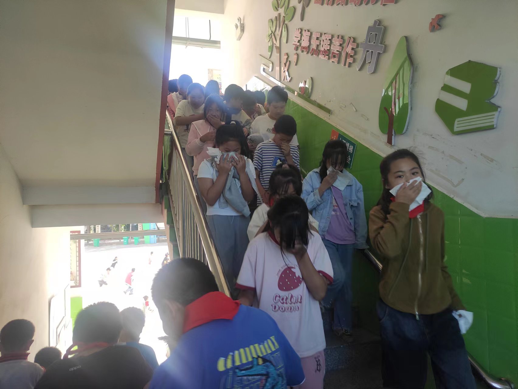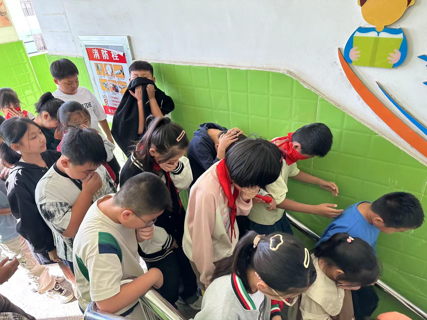随着紧急警报的响起,消防演练正式开始。师生们按照演练方案迅速就位,严阵以待,教师到班到岗,沉着冷静地指挥学生捂住口鼻,有序撤离班级。