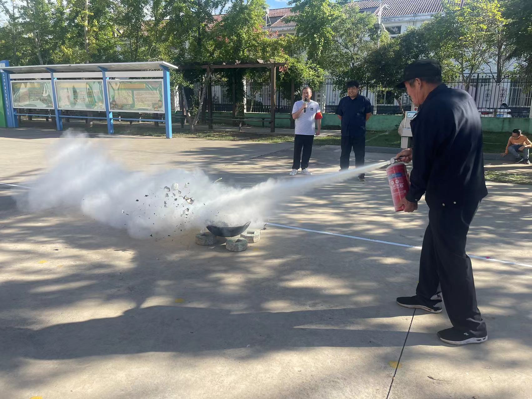 随即顾光军校长、卢郜杰校长组织全体师生以及安保工作人员,进行了有针对性灭火器的使用培训。顾光军校长强调消防安全小常识,亲自示范手提式灭火器的使用方法,以及火灾逃生时的“三救”原则等。